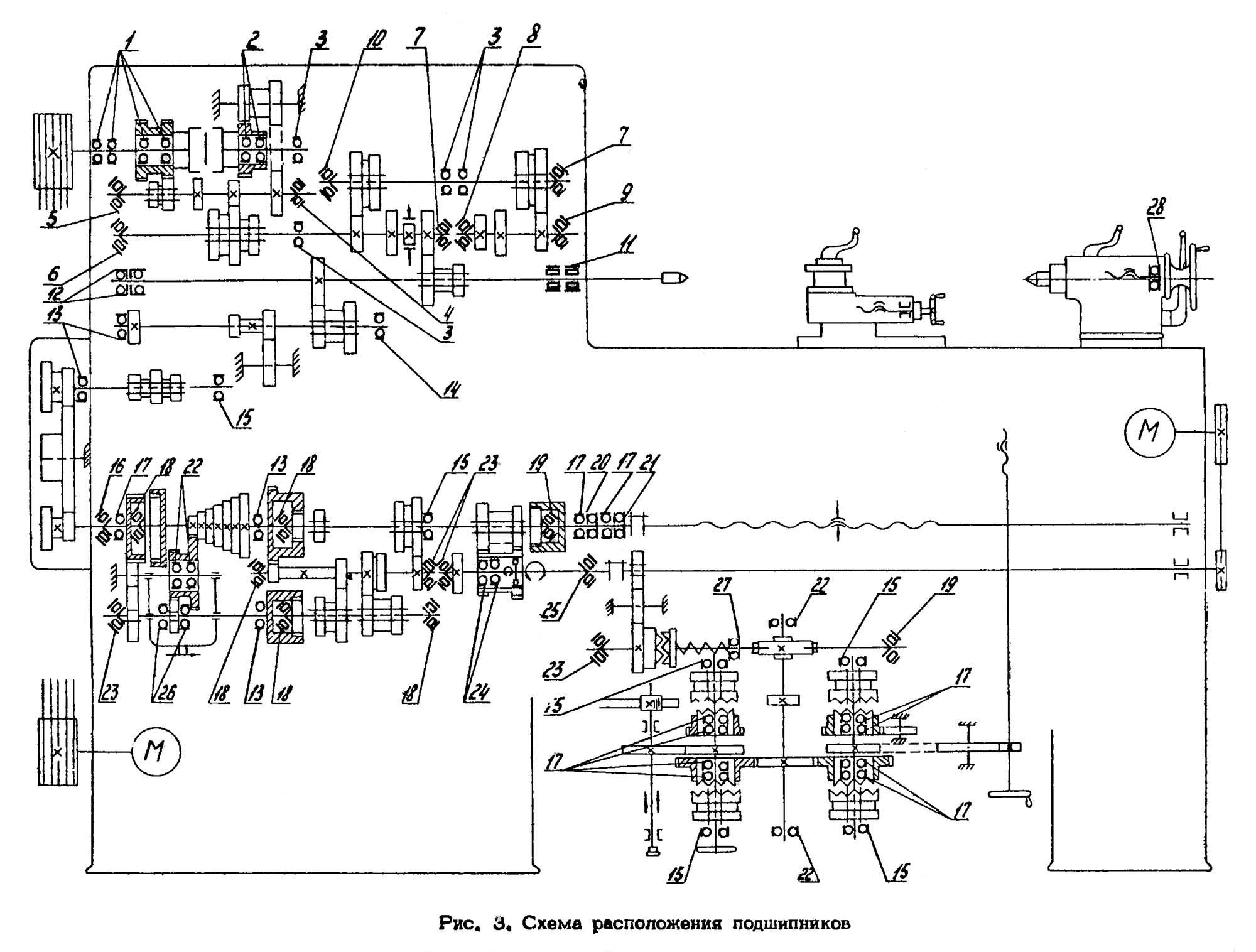 Схема установки підшипників на токарно-гвинторізному верстаті 1к62