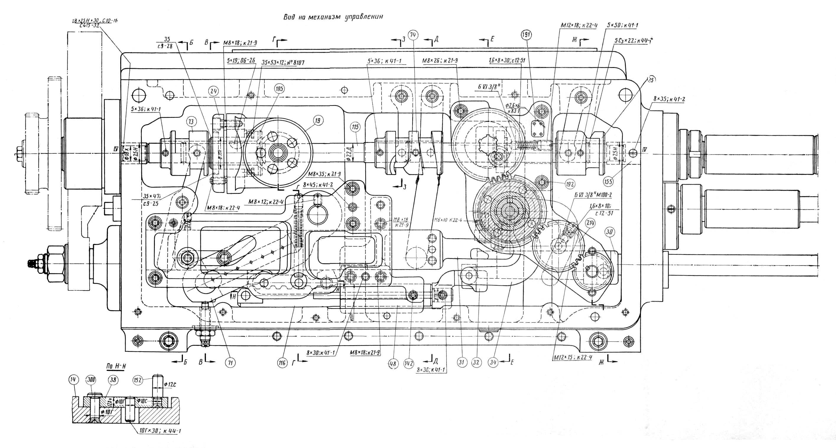 3. Розгортка передньої бабки токарно-гвинторізного верстата 1К62. Дивитись у збільшеному масштабі
