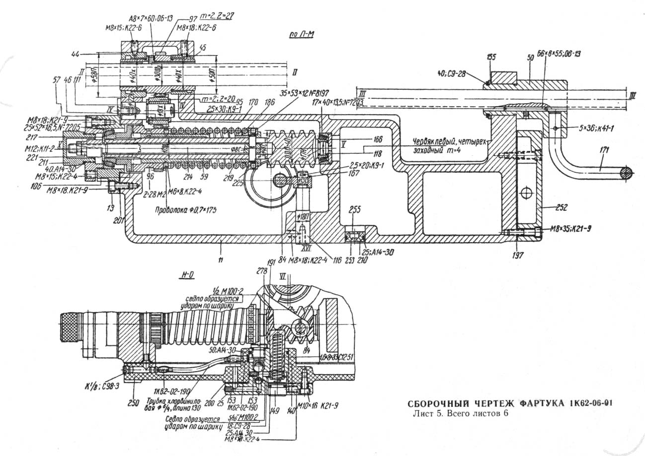 Фартук токарно-гвинторізного верстата 1К62. Дивитись у збільшеному масштабі