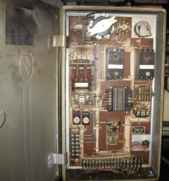 Електричнааппаратура, расположенная в нише верстата: 1, Магнитный пускатель, для керування електродвигуном головного привода, изготовленный заводом НВА. Катушка пускателя — на напряжение 220 или 380 В, в зависимости от напряжения сети заказчика.