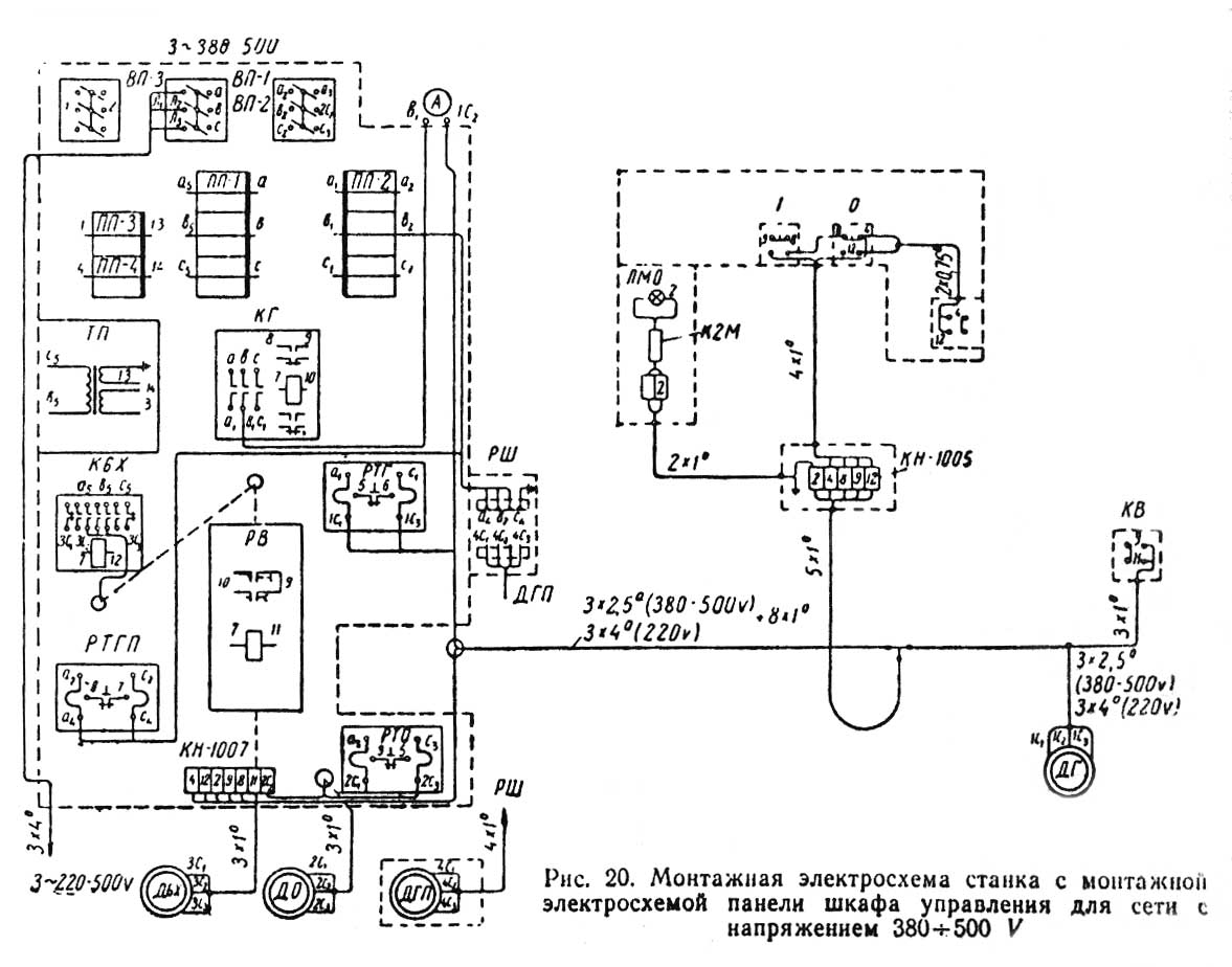 Схема з'єднань електрошафи токарно-гвинторізного верстата 1к62