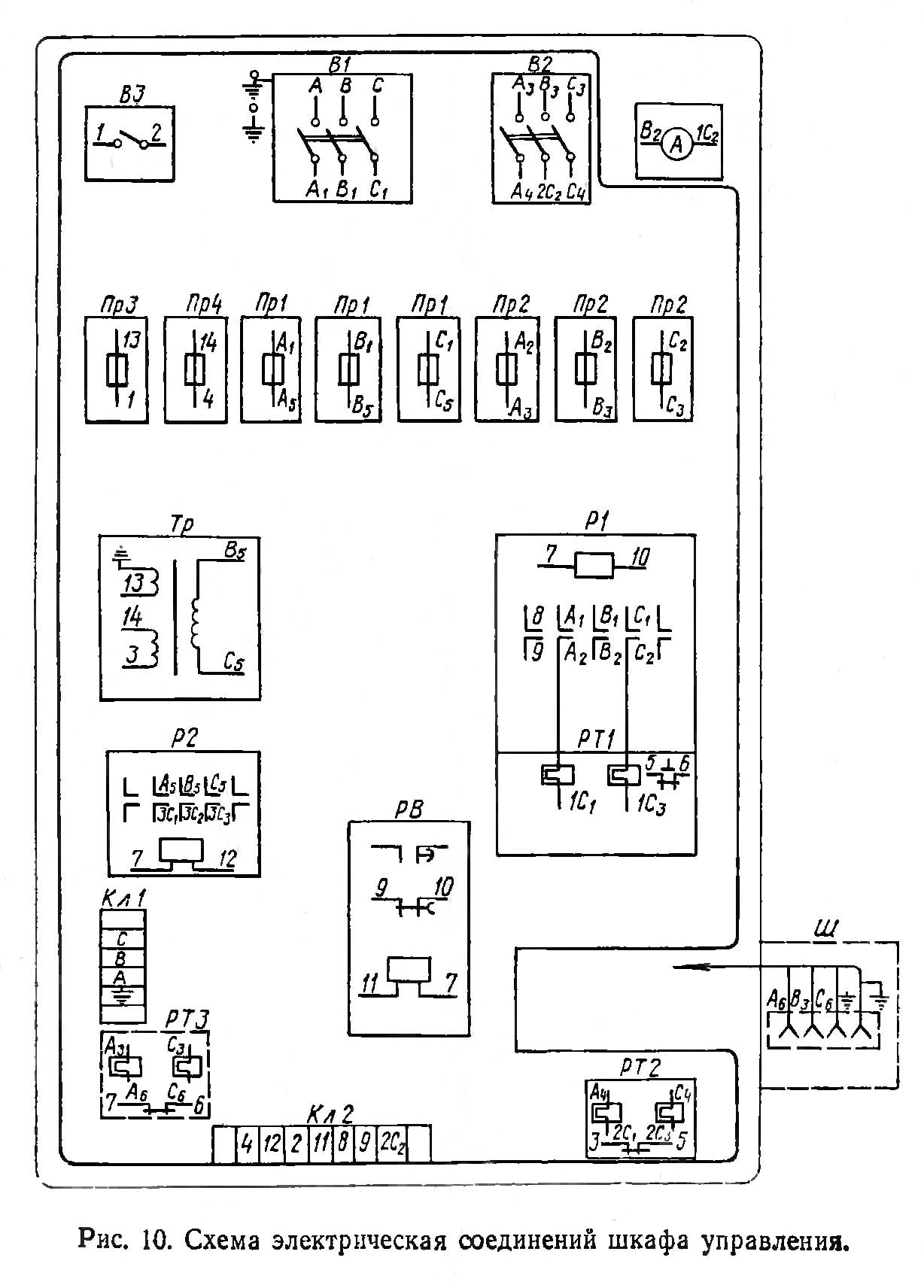 Схема електрична з'єднань шкафа керування показана на рис. 10.