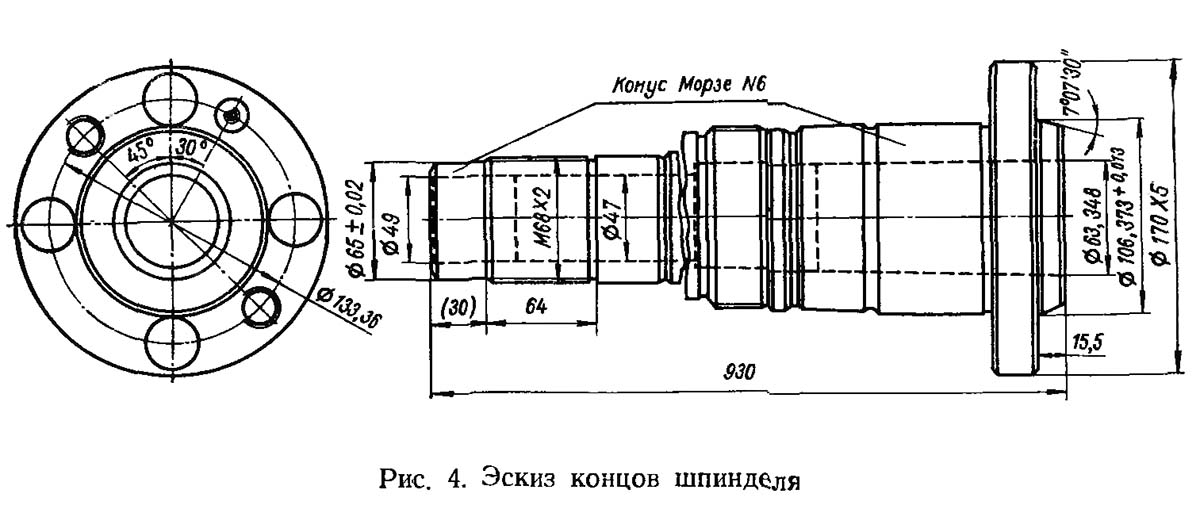 Кінець шпинделя токарного верстата 1К62Б