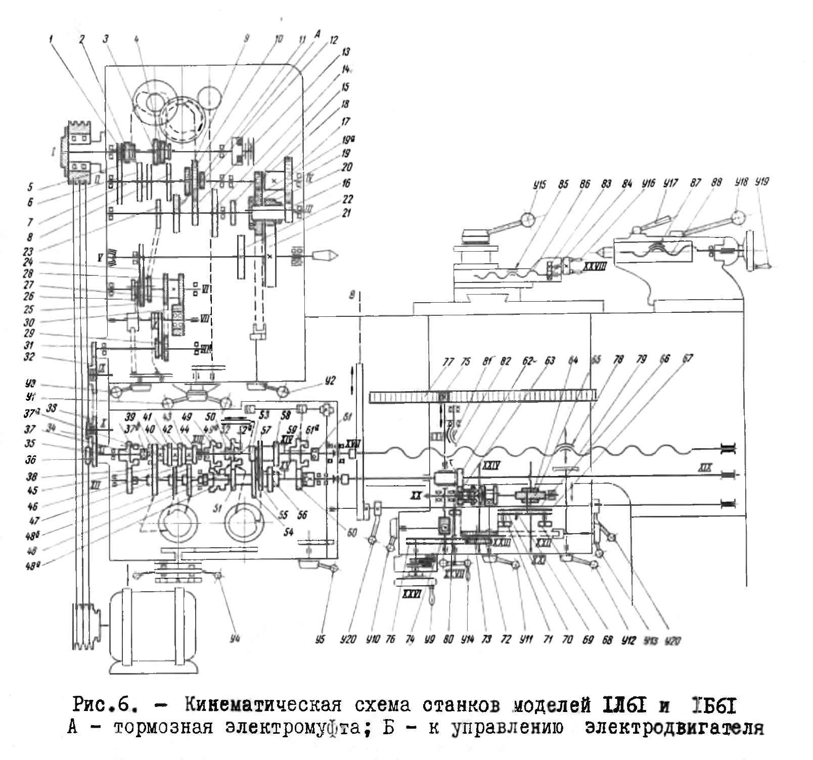 Кінематична схема токарно-гвинторізного верстата 1Л61