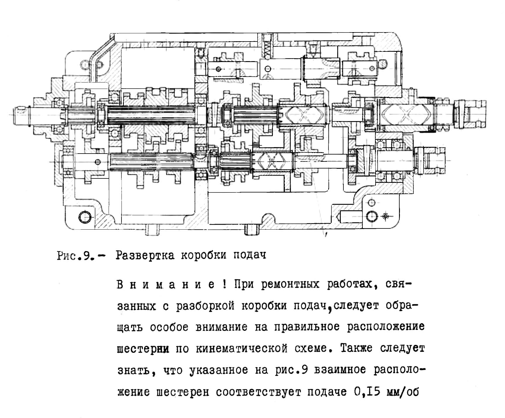 Коробка передач служит для передачи руху от коробки швидкостей механізму коробки подач і для налаштування подач на тип нарезаемой різьби.