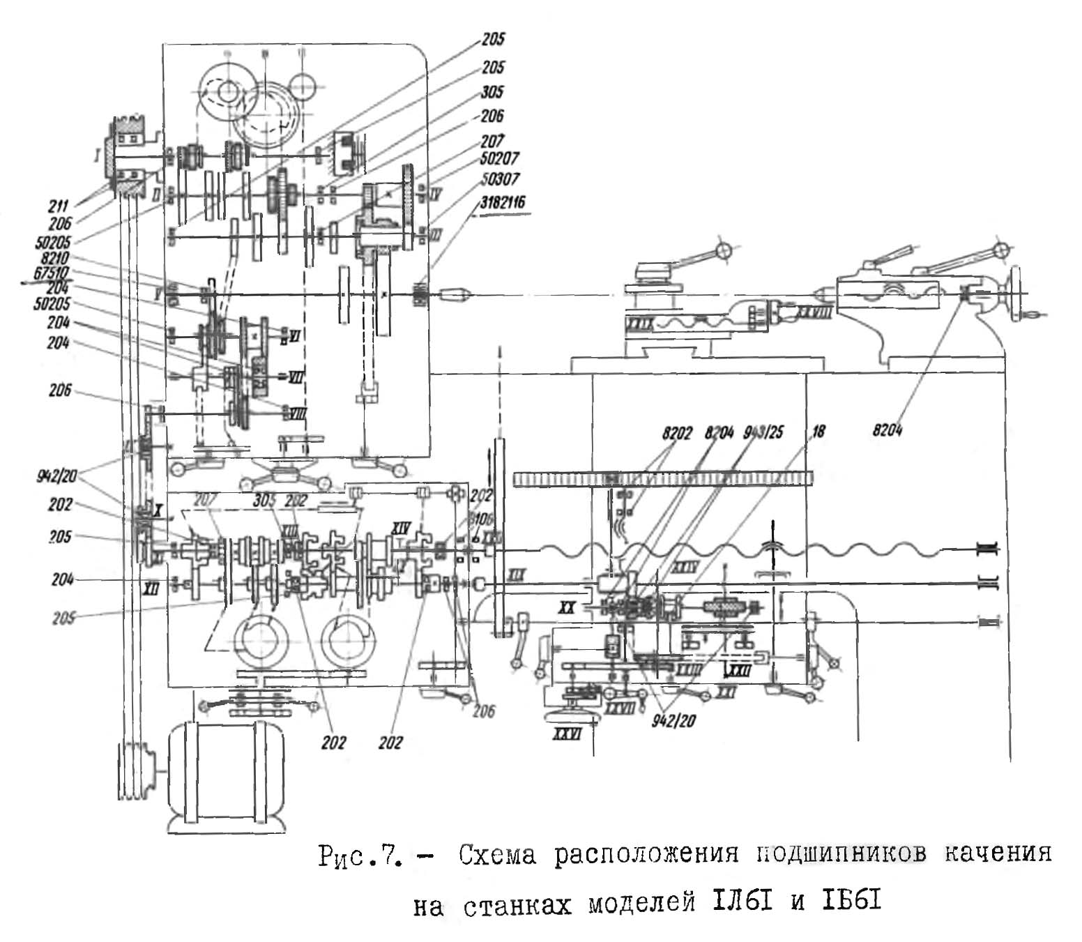 Схема розположення підшибників токарно-гвинторізного верстата 1Л61