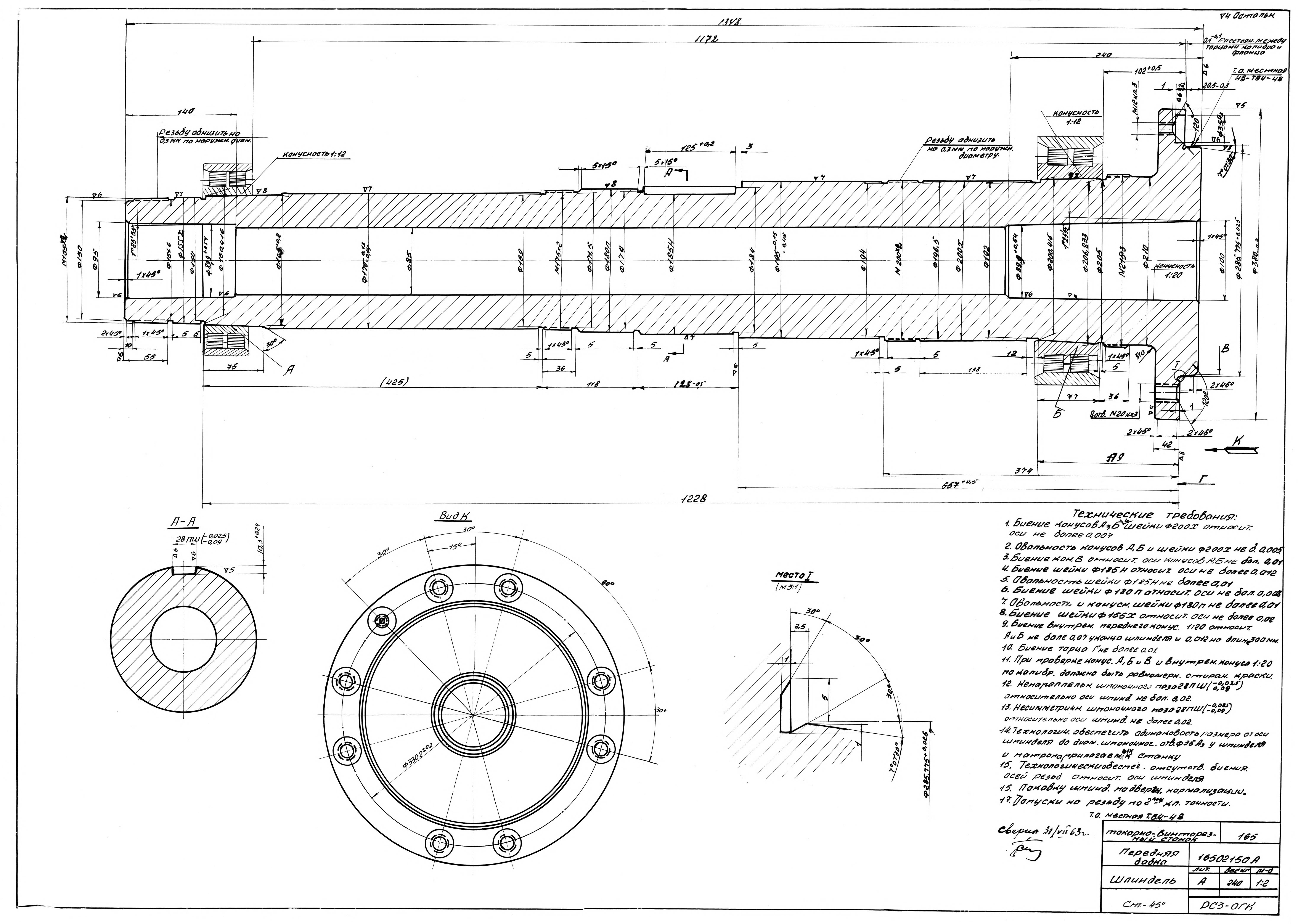 Креслення шпинделя токарно-гвинторізного верстата 1м65. Завантажити у збільшеному масштабі