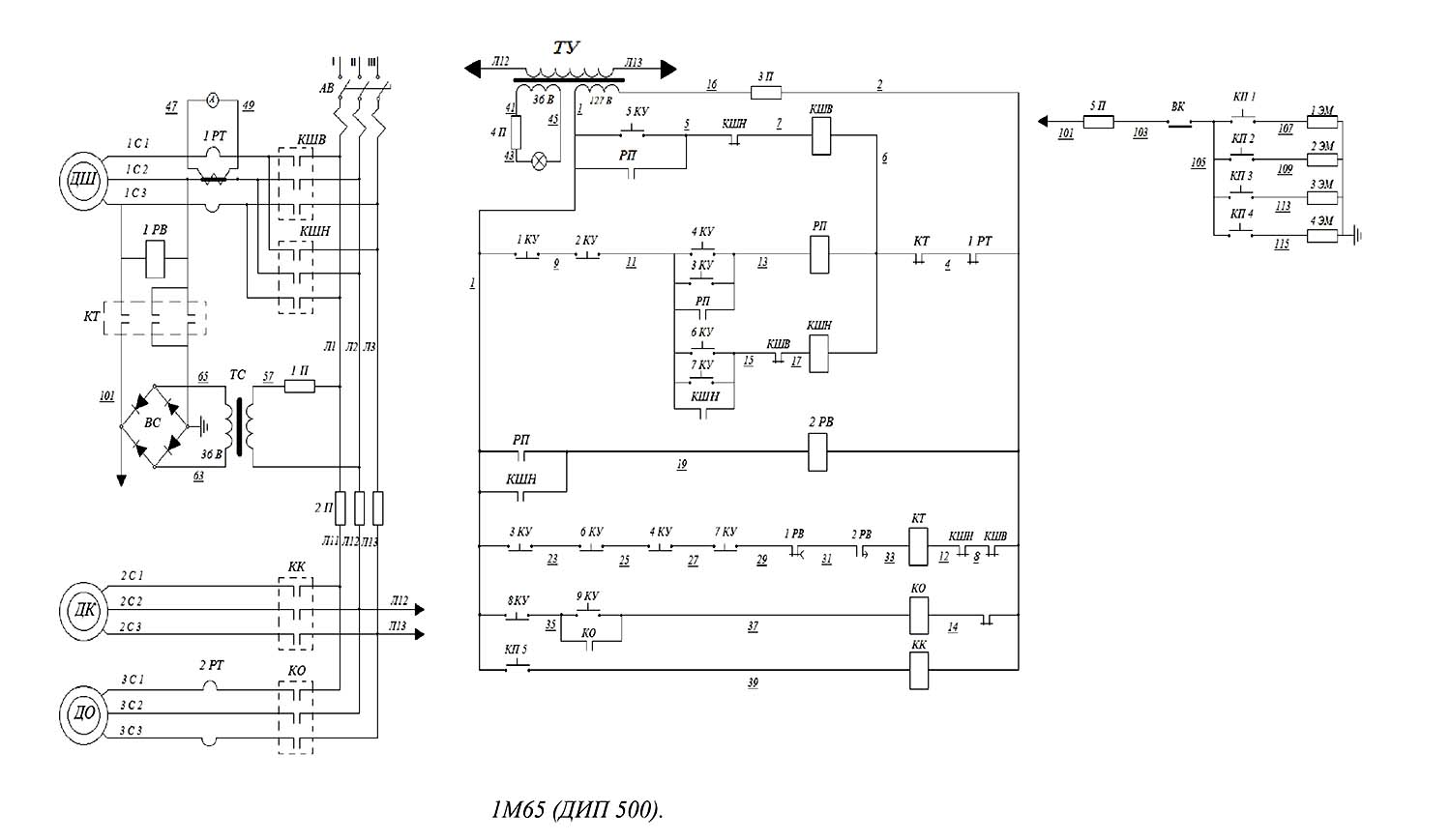 1. Вариант. Електрична схема токарно-гвинторізного верстата 1М658. Скачать в увеличенном масштабе