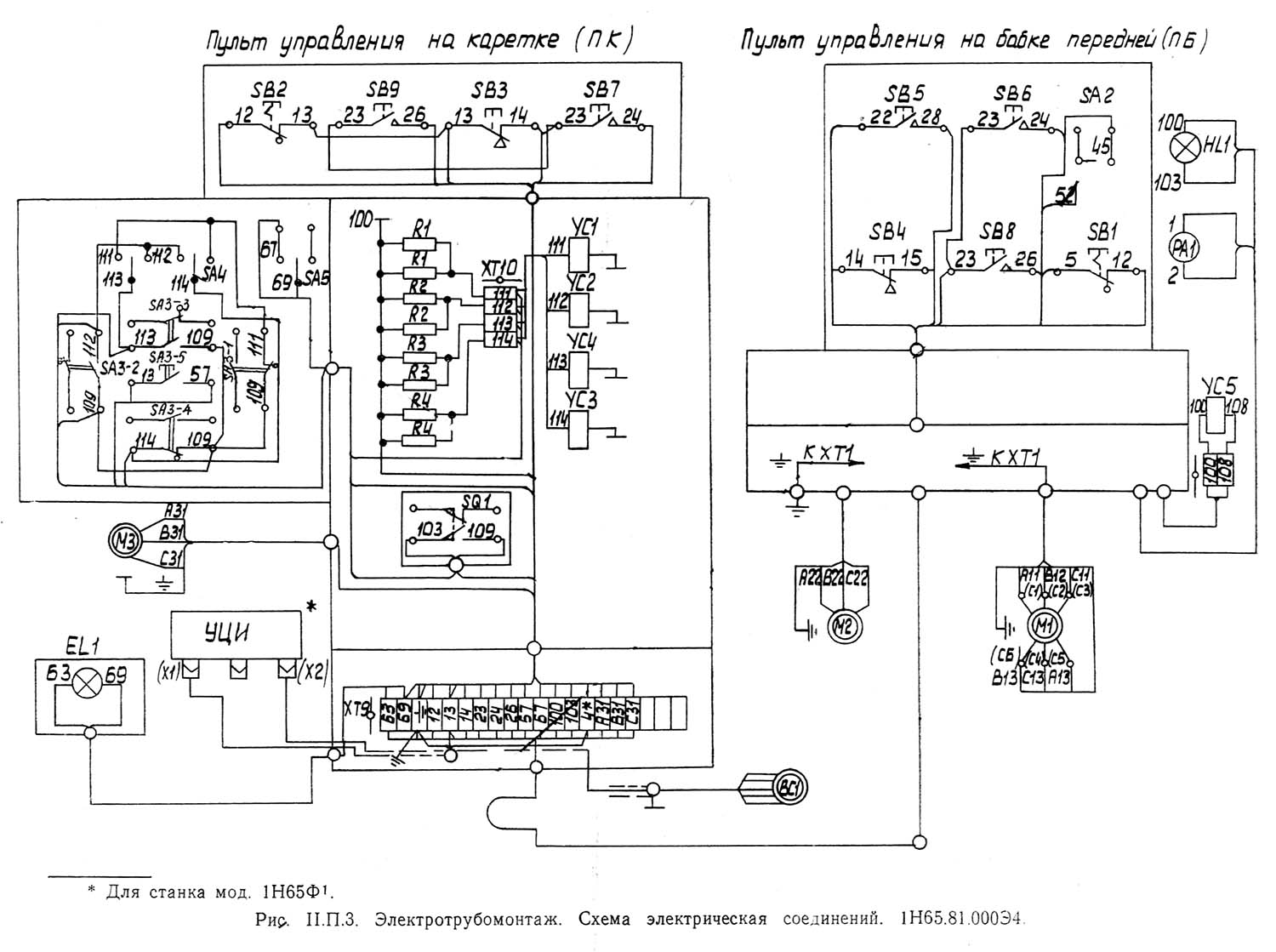 Схема соедимнений токарно-гвинторізного верстата 1Н65. Скачать в увеличенном масштабе