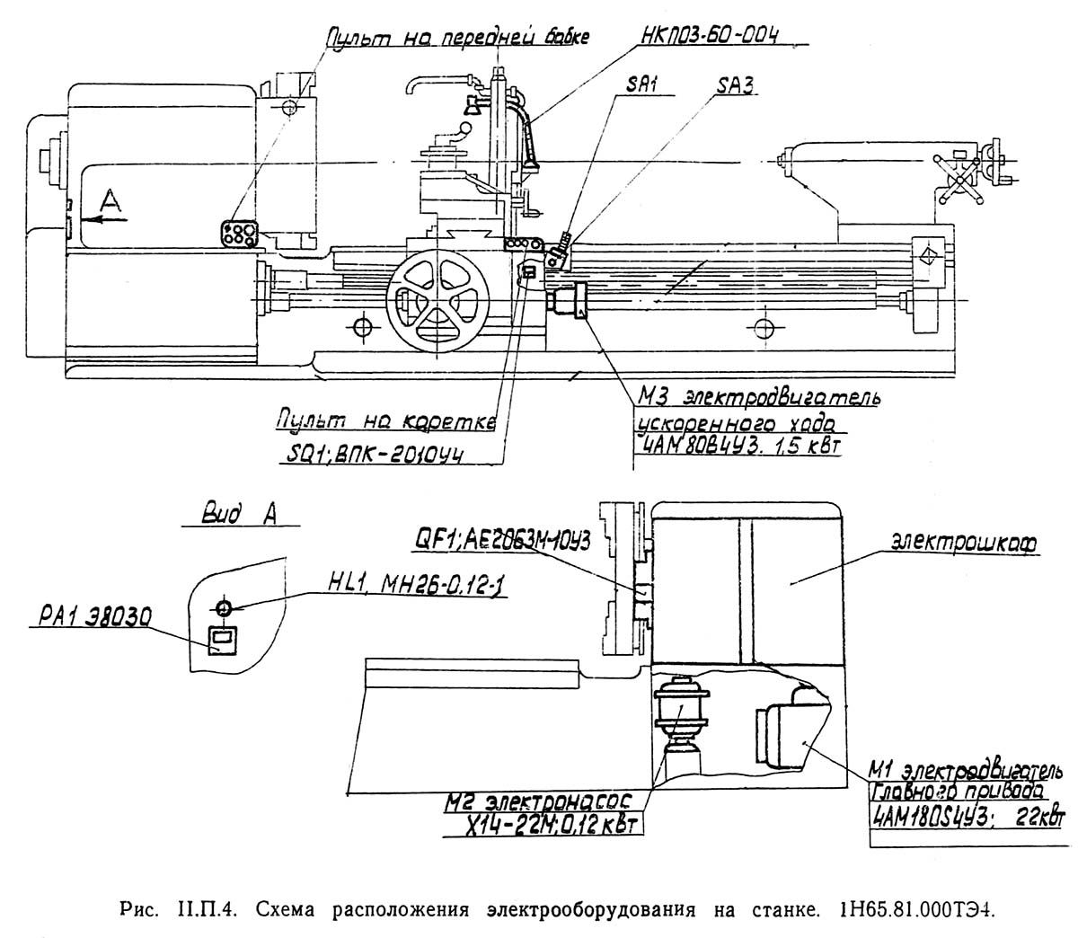 Розташування електроустаткування токарно-гвинторізного верстата 1Н65