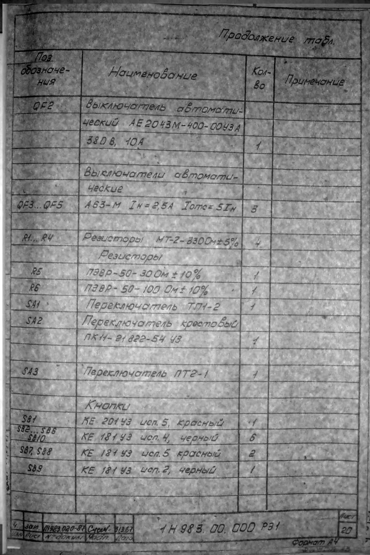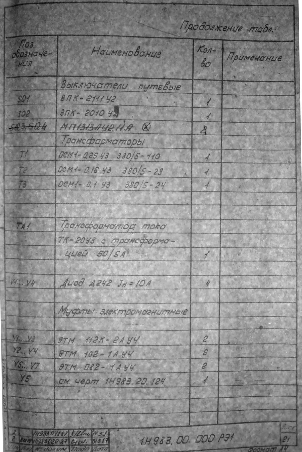 Список елементів схеми трубонарізного верстата 1Н983. Дивитись у збільшеному масштабі