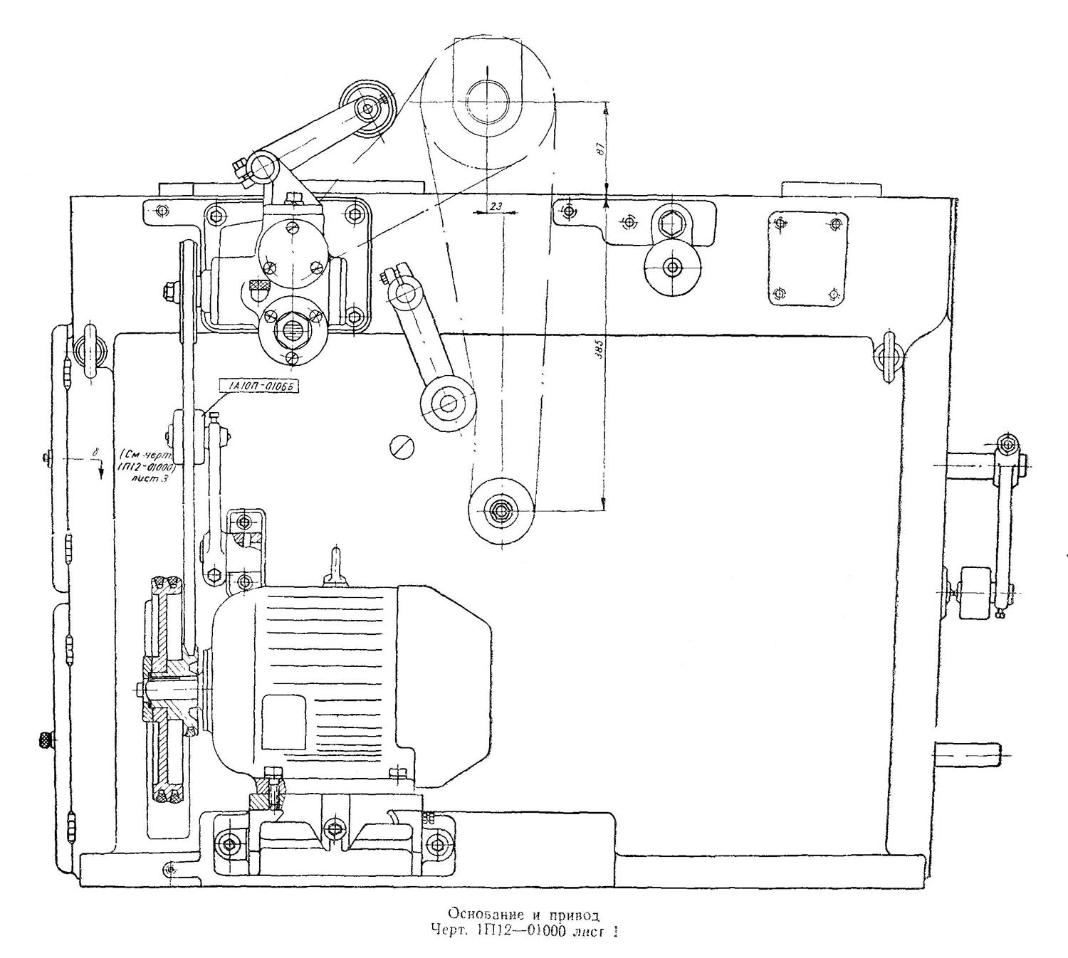 До задньої стінки корпусу прикріплений кронштейн 1А10П—01050 (креслення 1П12—01000 лист 3) з рухомою плитою, на якій встановлений електродвигун.