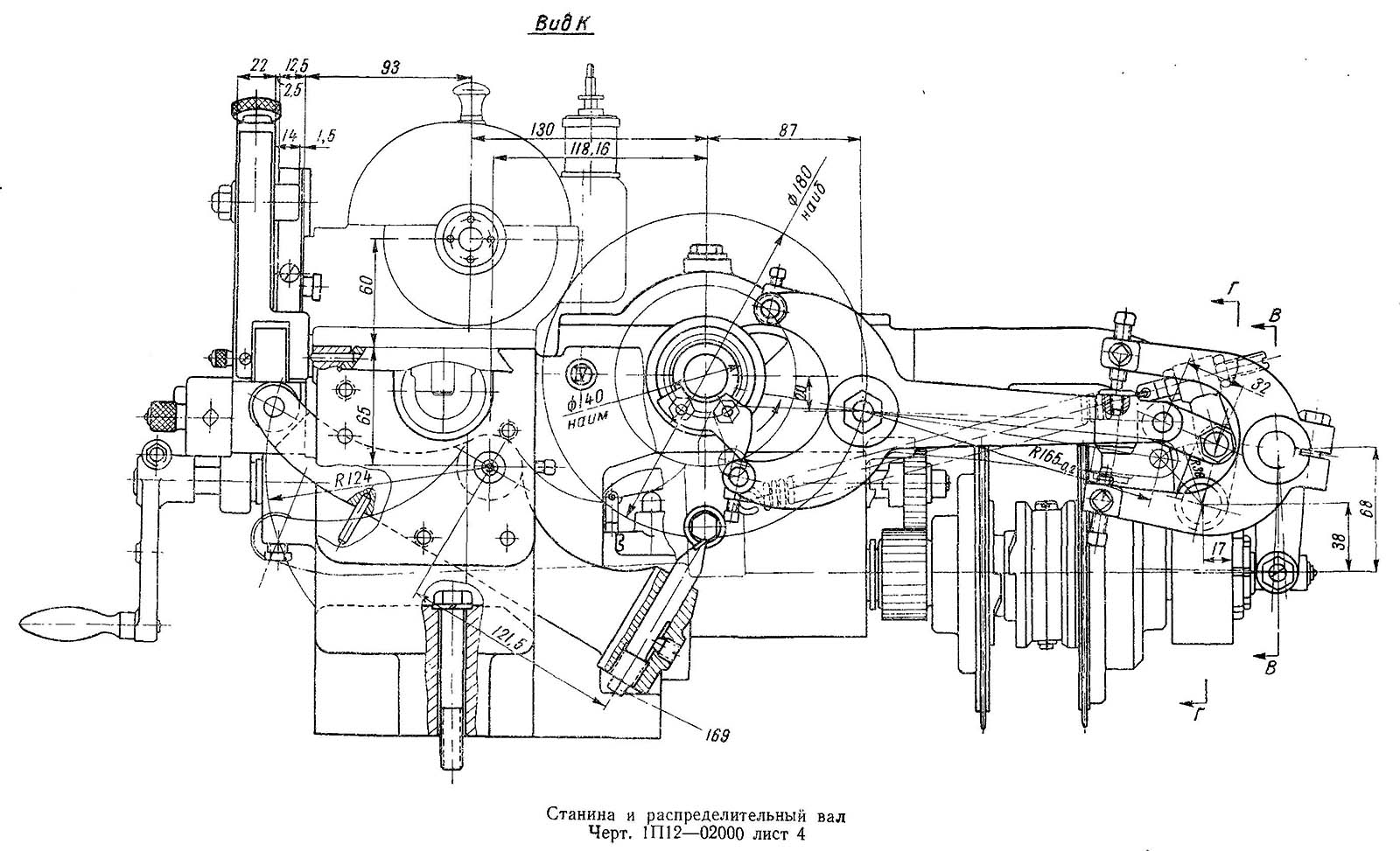 Станина та розподільний вал верстата 1П12 (лист 4)