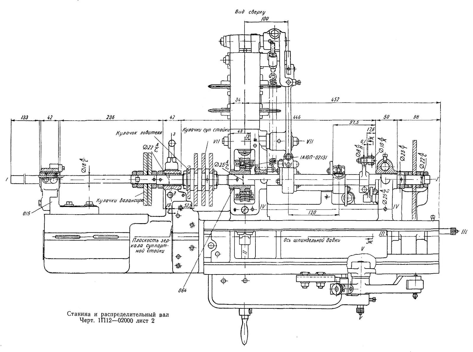 Станина та розподільчий вал верстата 1П12 (лист 2)