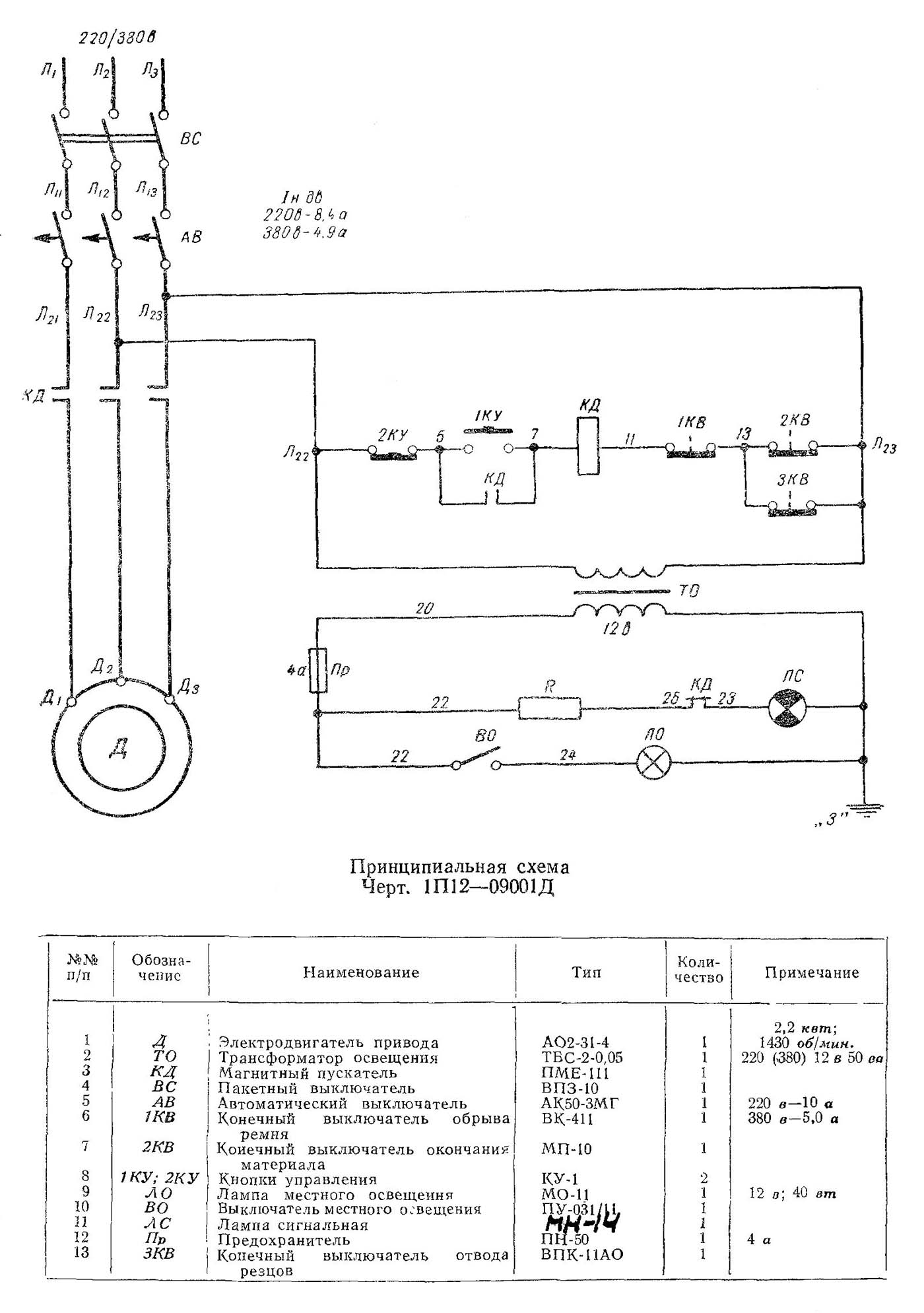 Схема електрична принципова токарно-подовжнього верстата автомата 1П12
