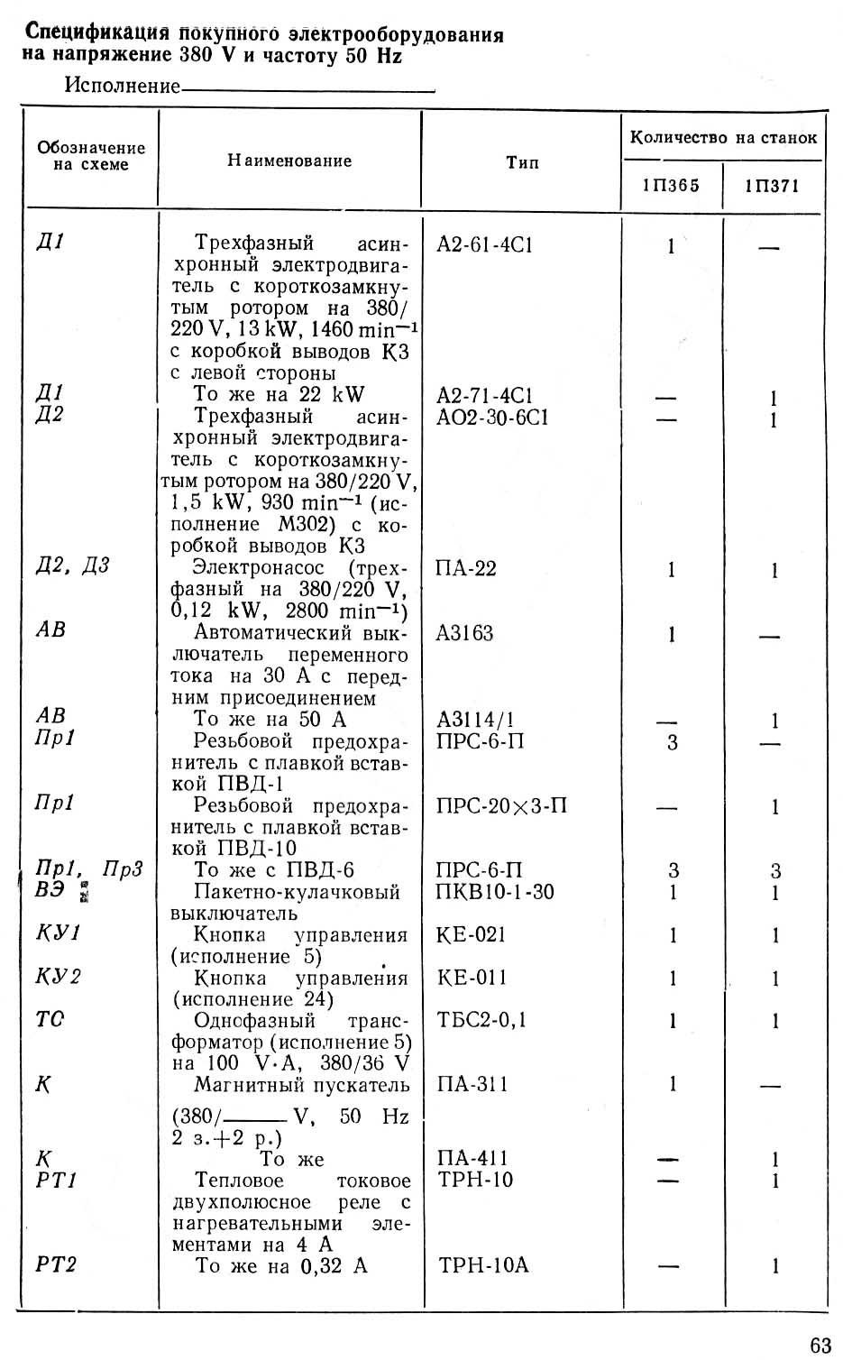 На токарно-револьверних верстатах 1П365 і 1П371 встановлені трифазні короткозамкнуті електродвигуни з номінальною робочою напругою 380 В частота 50 Гц.