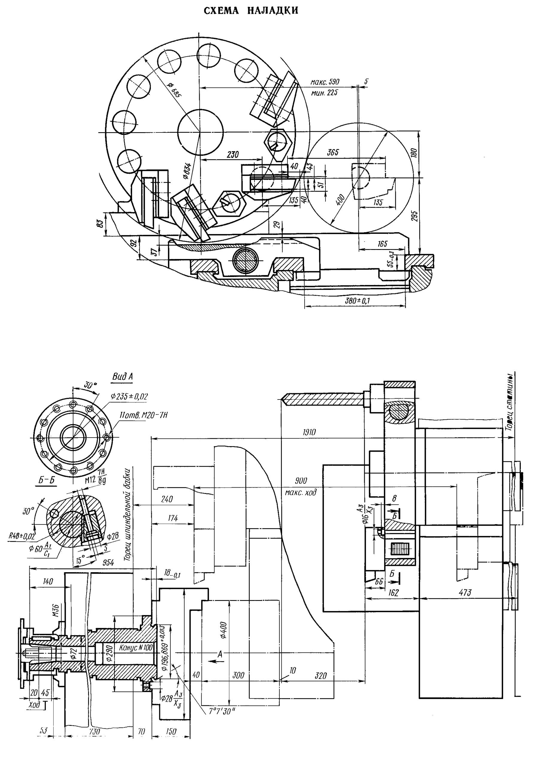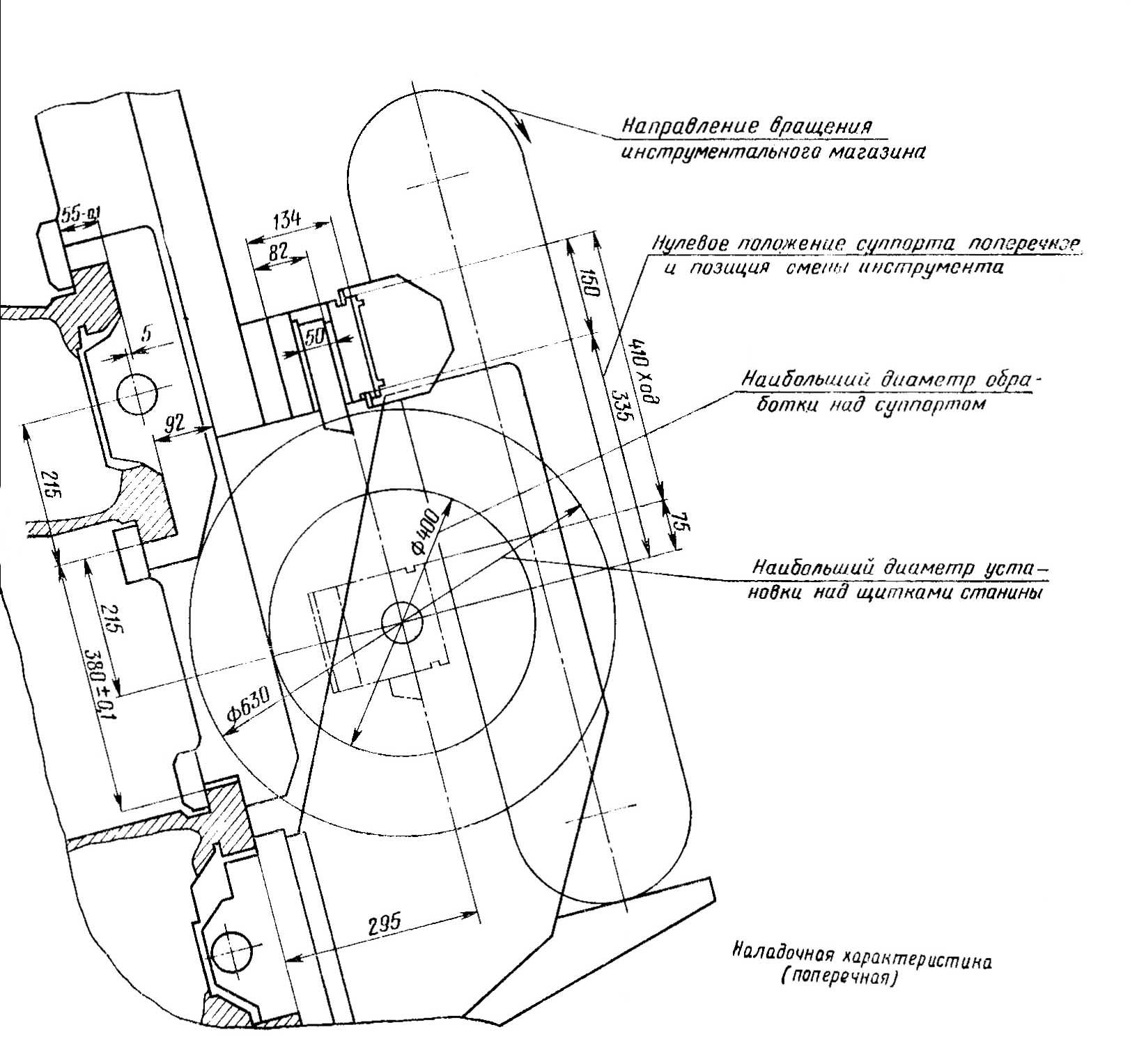 Налагоджувальна характеристика токарного верстата 1П732РФ3. Дивитись у збільшеному масштабі