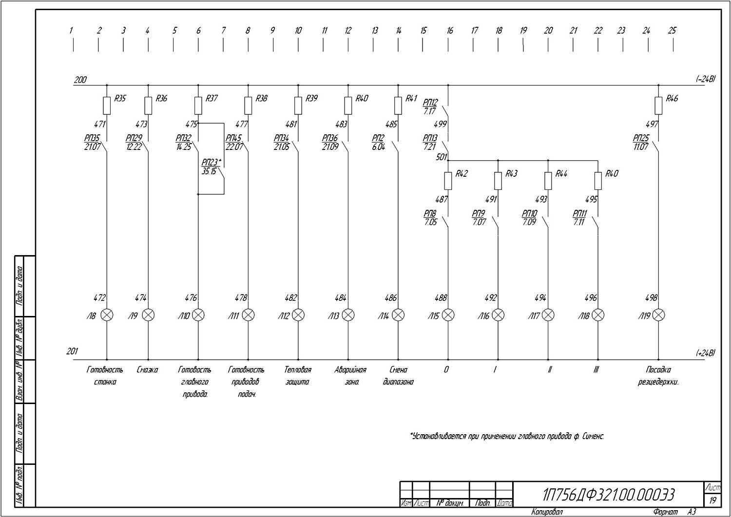 Електрична схема токарного верстата 1П756ДФ3. Дивитись у збільшеному масштабі