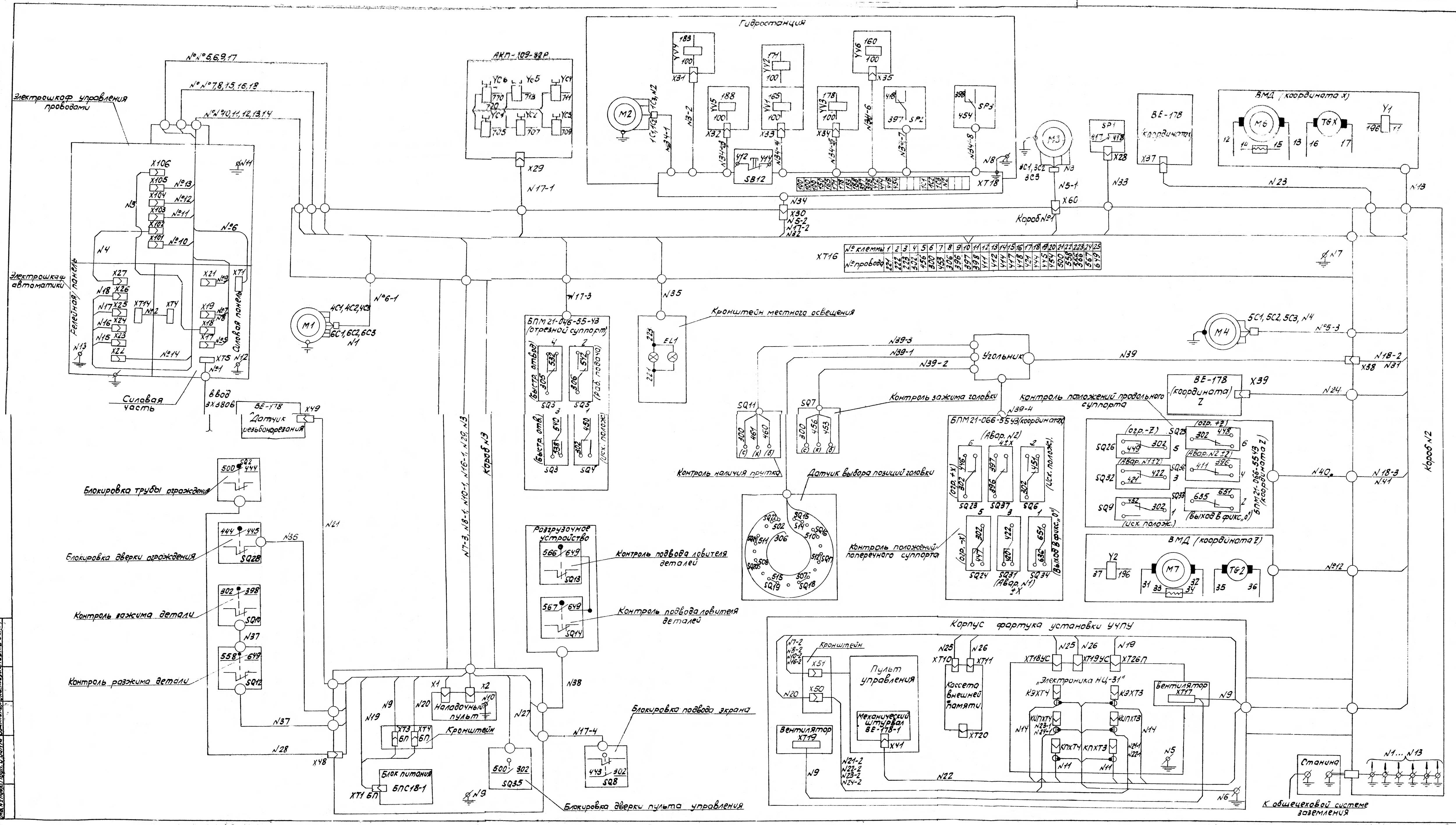 Електрична схема токарного револьверного верстата с ЧПУ 1В340Ф30