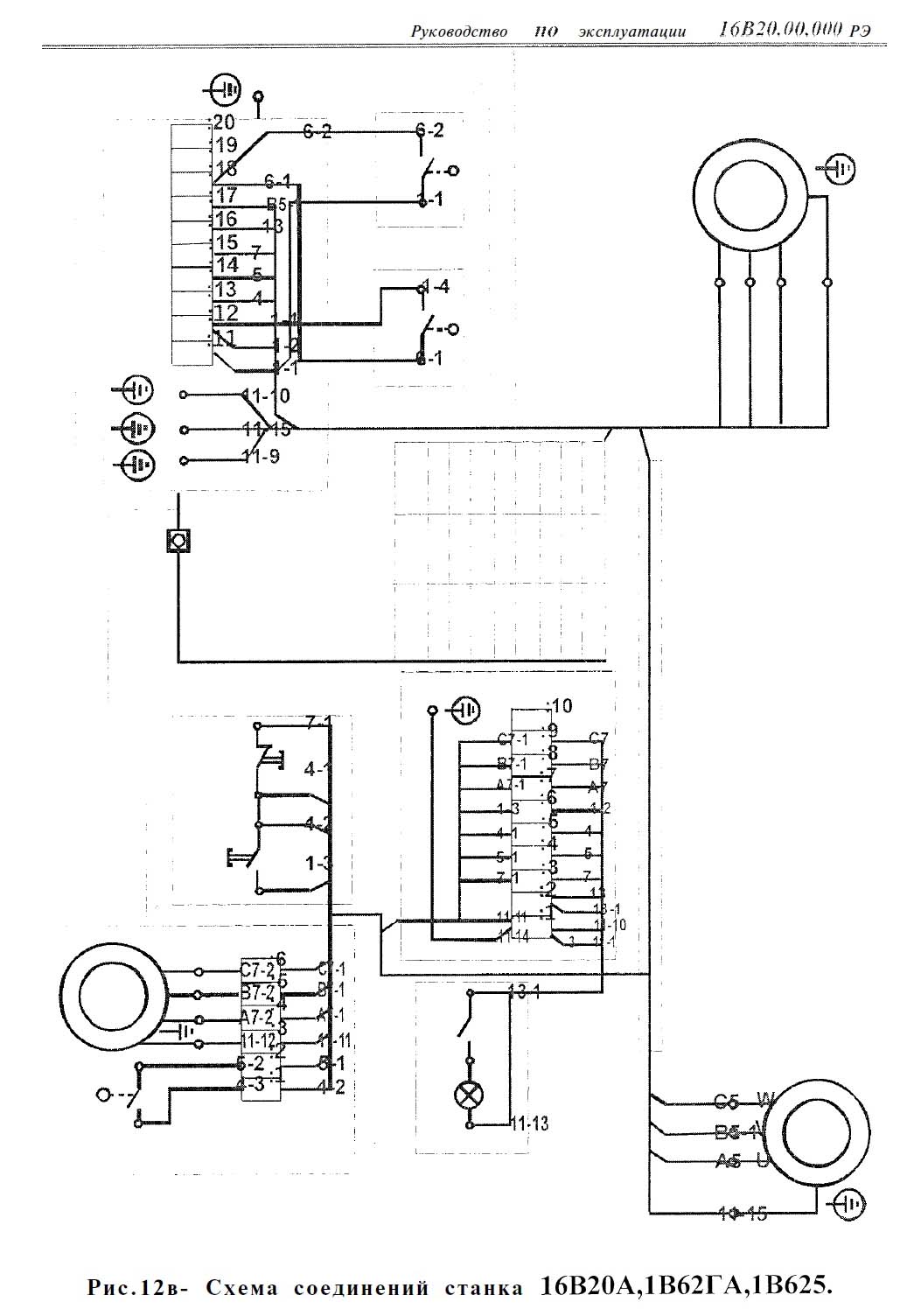Схема з'єднань верстата токарно-гвинторізного верстата 16В20, 1В62Г