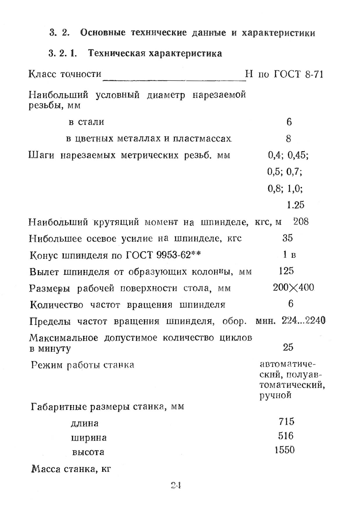 Технічні характеристики різьбонарізного верстата 2054м. Завантажити у збільшеному масштабі