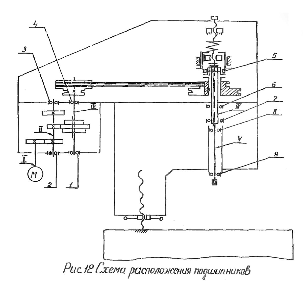 2. Схема розположення підшибників резьбонарезного верстата 2054м. Дивитись у збільшеному масштабі
