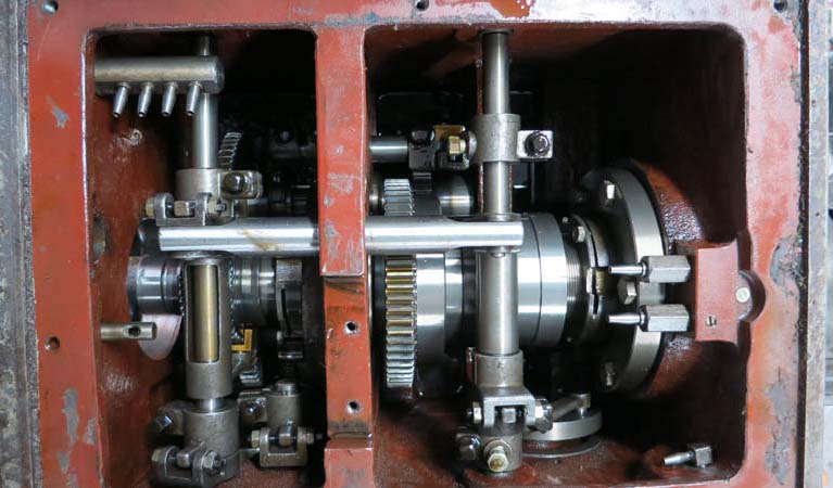 Редуктор, установленный в левой частини тумбы, представляет собой четырехосную коробку швидкостей з приводом от фланцевого електродвигуна.