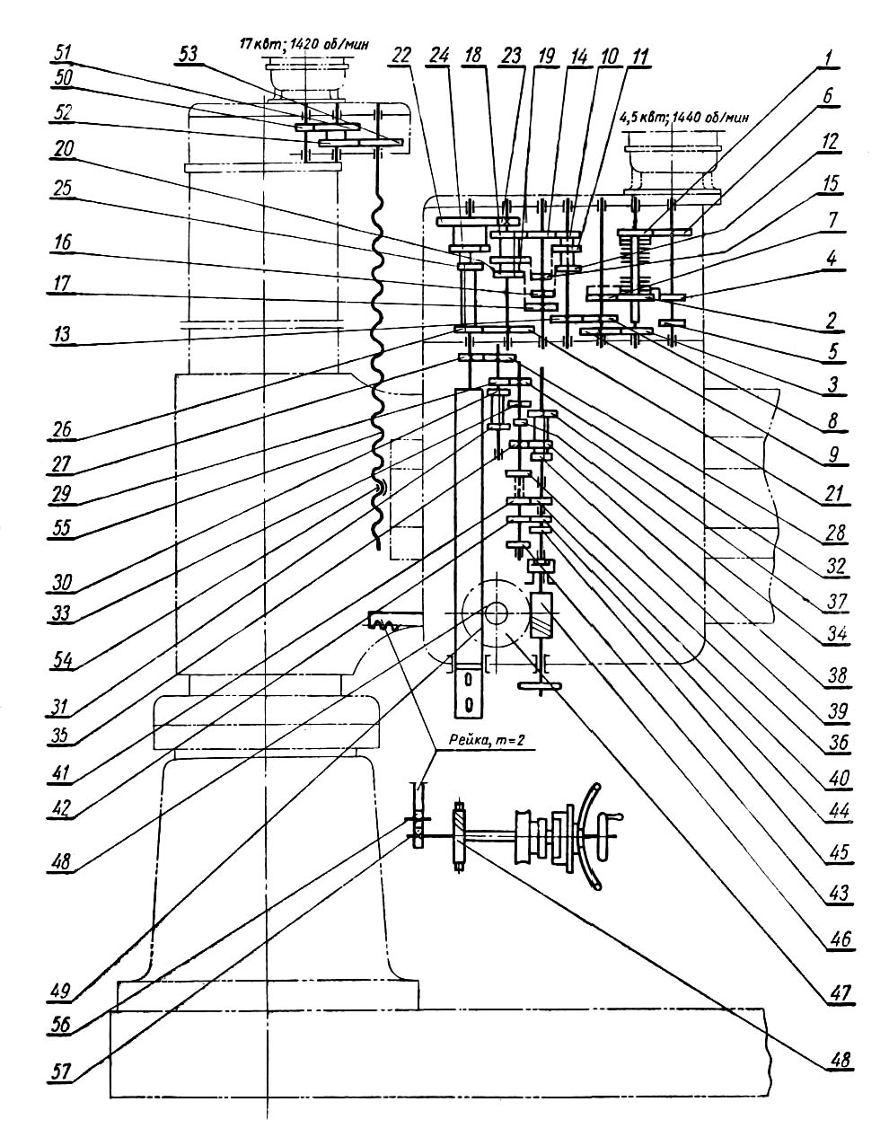 Механізм подач радиально-сверлильного верстата 255. Дивитись у збільшеному масштабі