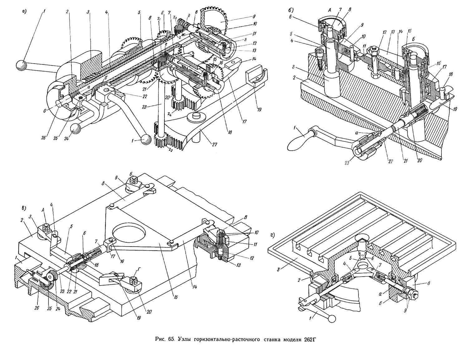 Вузли горизонтально-расточного верстата 262г. Дивитись у збільшеному масштабі