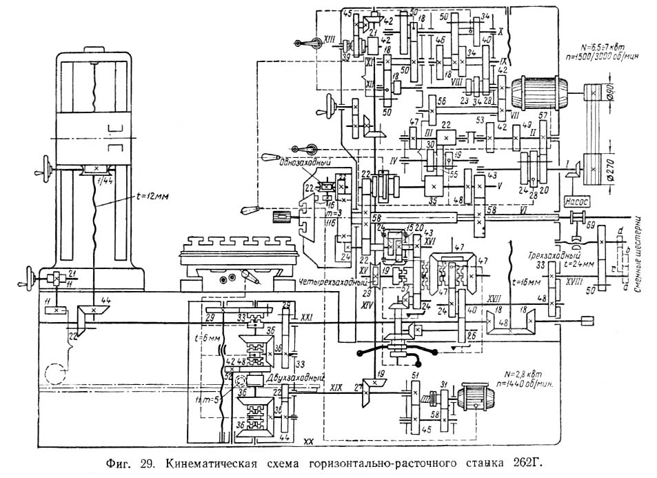 Кінематична схема горизонтально-расточного верстата 262г
