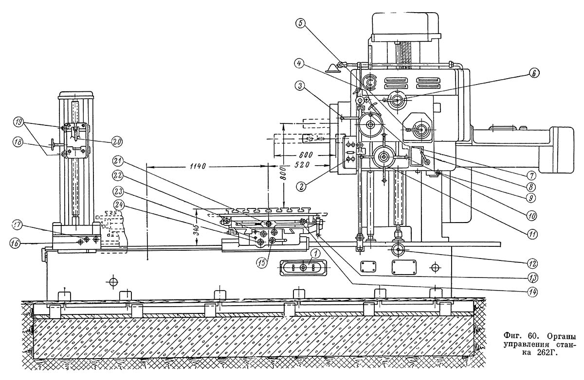 Розташування основних вузлів горизонтально-розточувального верстата 262г