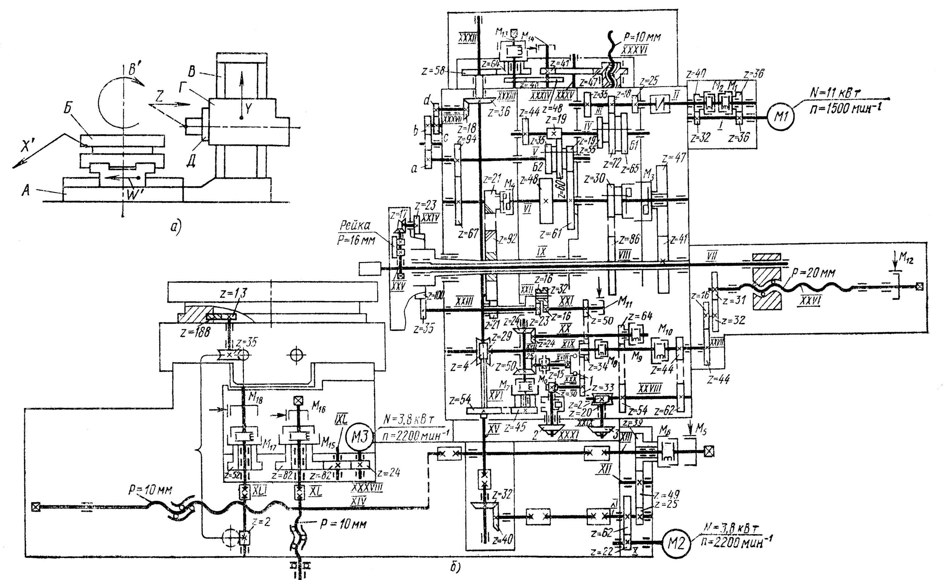 Кінематична схема горизонтально-расточного верстата 2А620Ф2