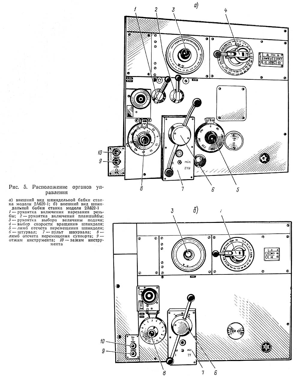 На головному пульті зосереджено всі основні пускові органи керування. Крім головного пульта, на верстаті є ще кілька місць оперативного керування верстатом: