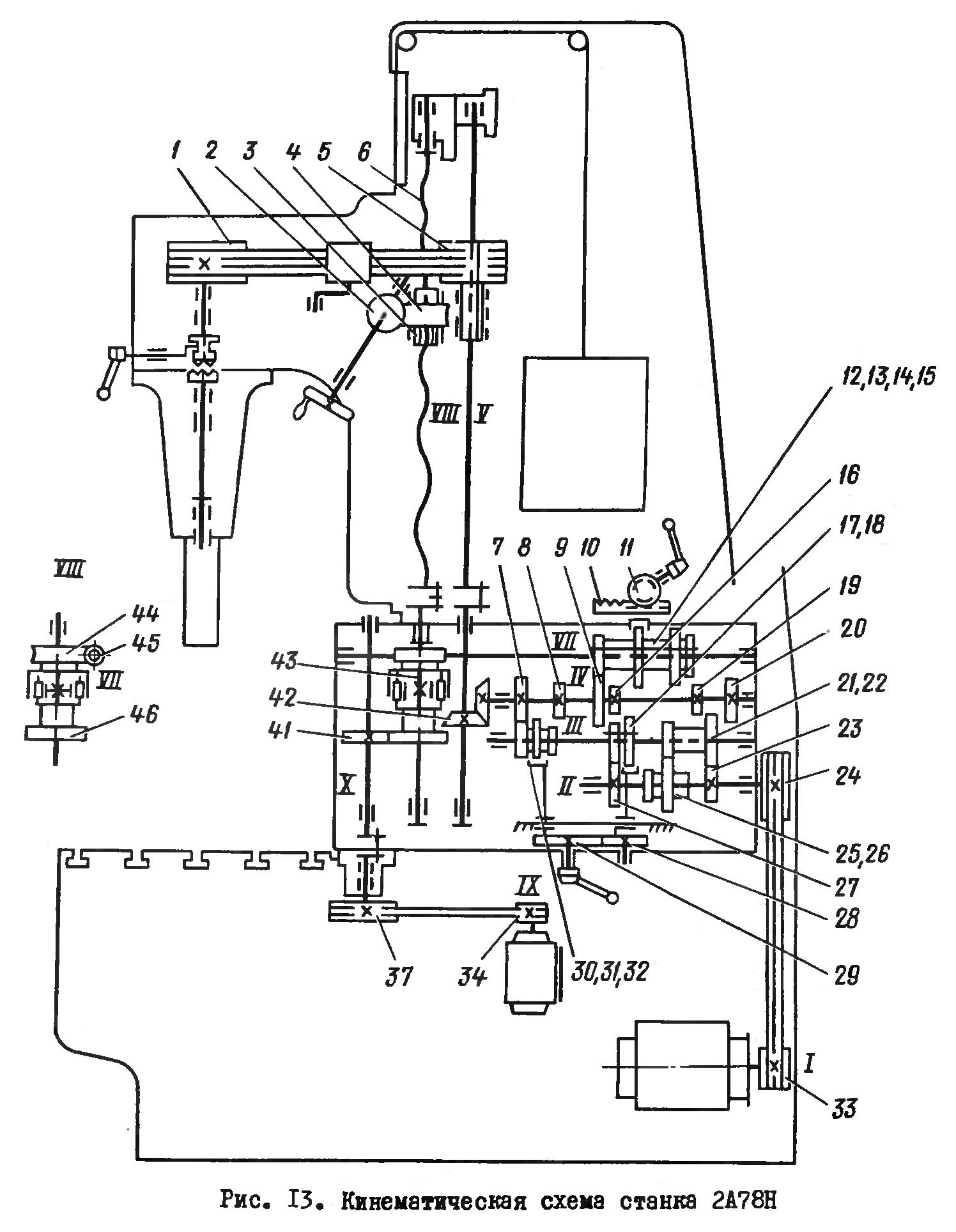 Кінематична схема оздоблювально-розточувального верстата 2а78н