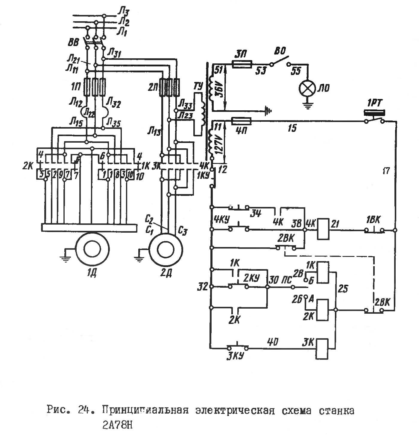 Схема електрична отделочно-расточного 2А78Н. Дивитись у збільшеному масштабі