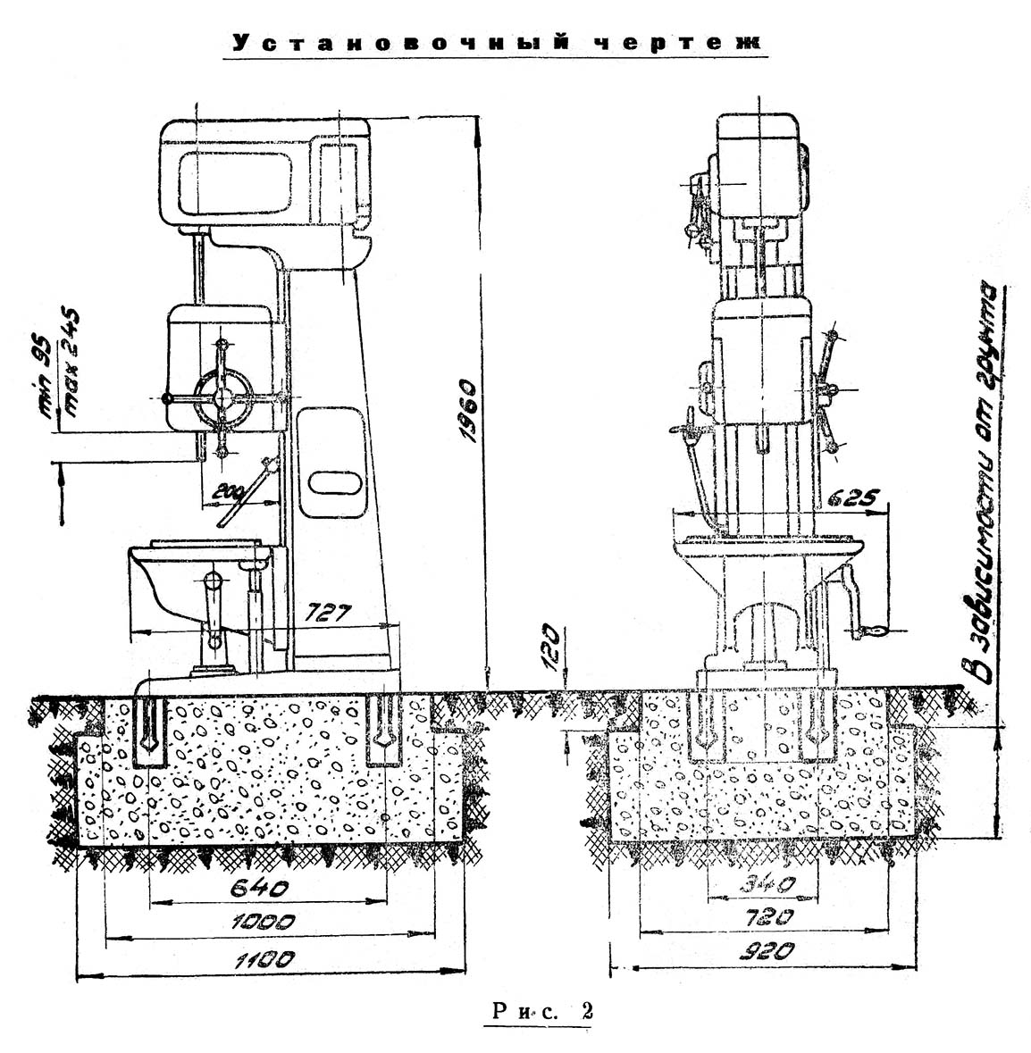 На фундаментную плиту устанавливается колонна, на верхнем кінці її устанавливается коробка швидкостей на подставке. По направляющим колонны перемещается стол і кронштейн верстата. В нише колонны размещается електроаппаратура верстата. Электронасос, падающий охлаждающую жидкость, устанавливается на фундаментную плиту внутри колонны.