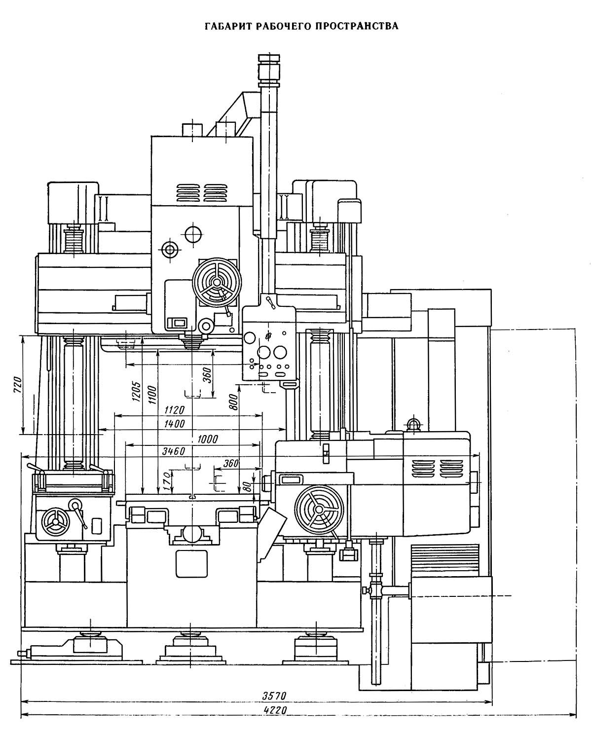 Настановне креслення координатно-розточувального верстата 2Е460. Завантажити у збільшеному масштабі