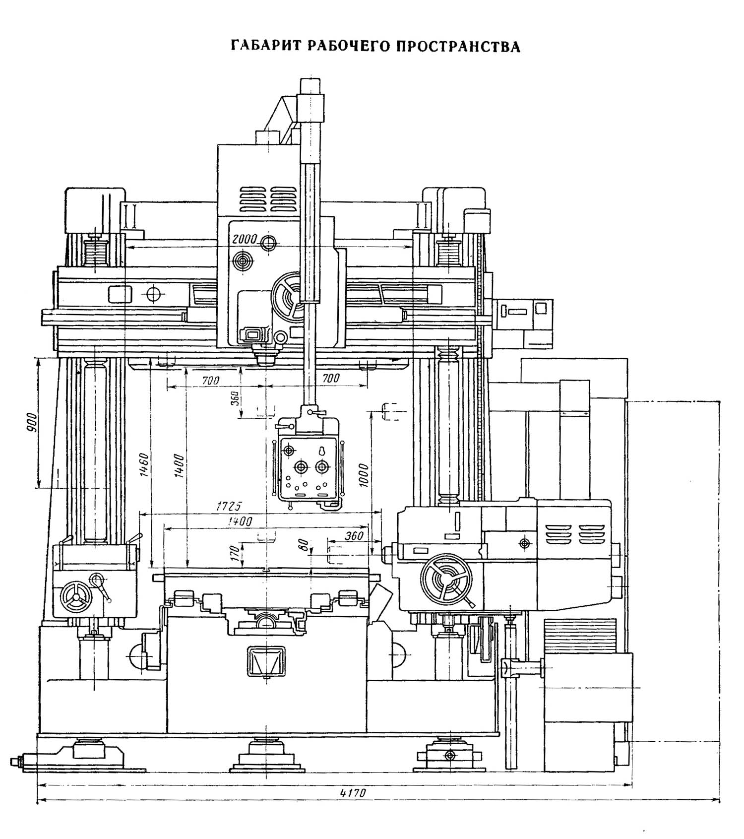 Габарит робочого простору верстата 2е470