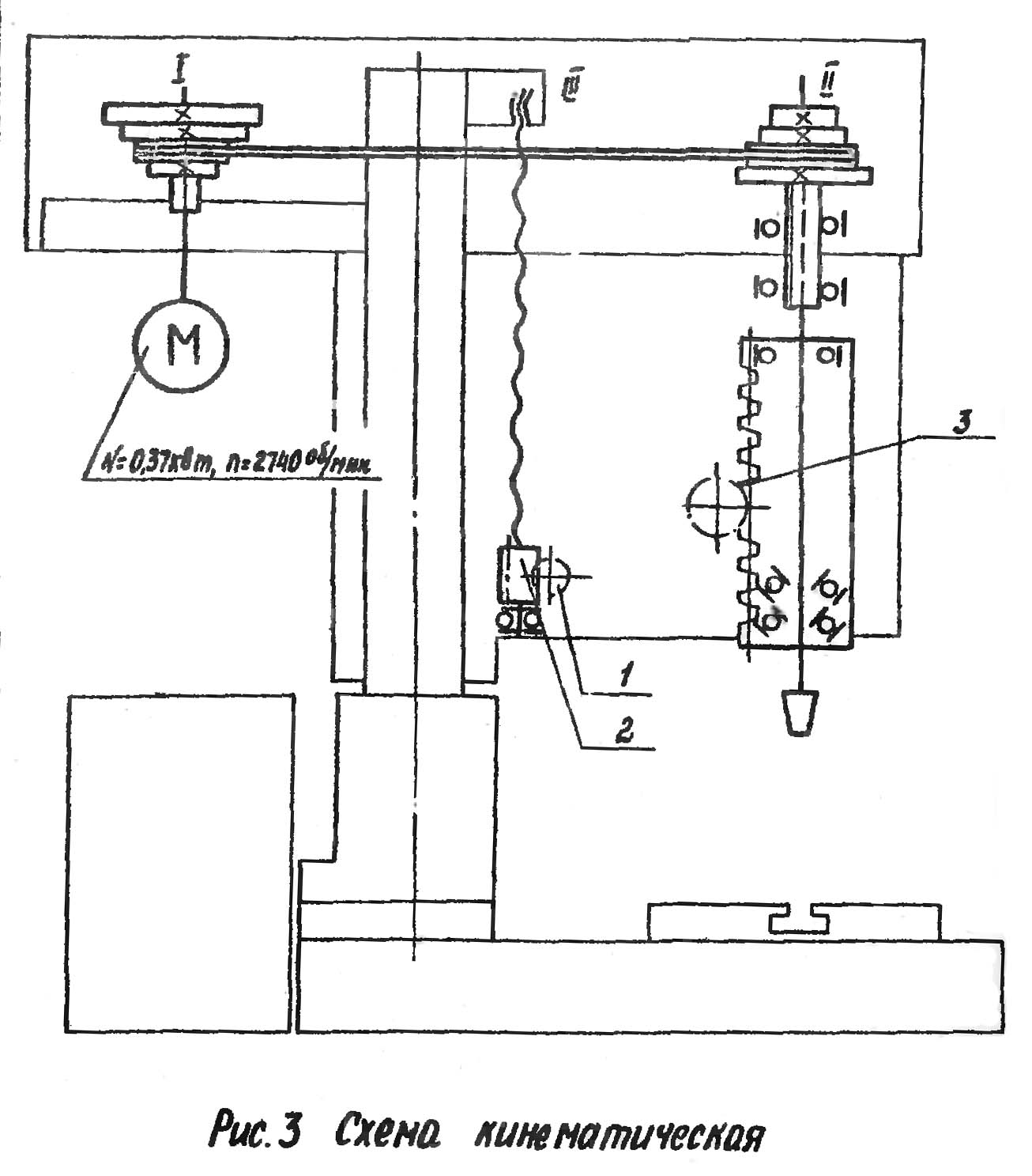 Кінематична схема свердлильного верстата 2Г106П. Дивитись у збільшеному масштабі