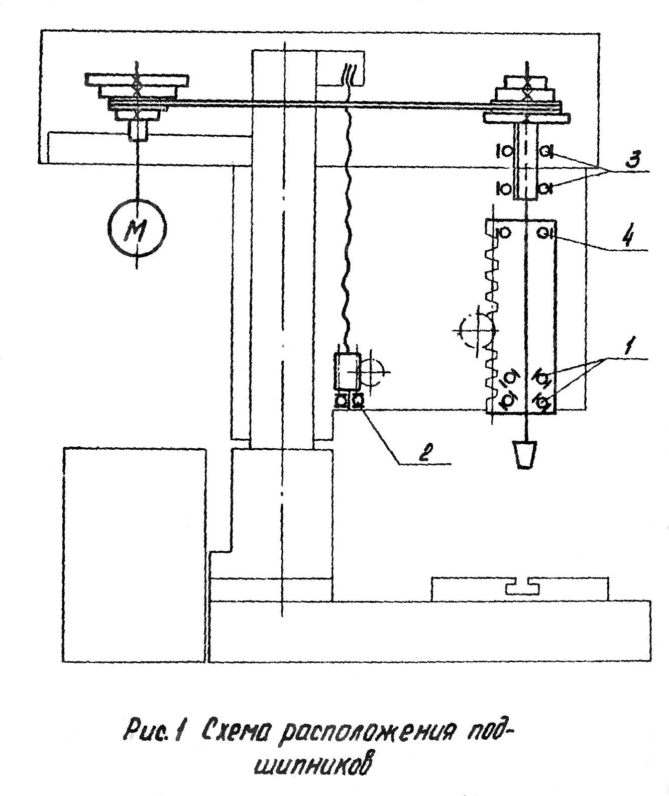 Схема розташування підшипників свердлильного верстата 2Г106П