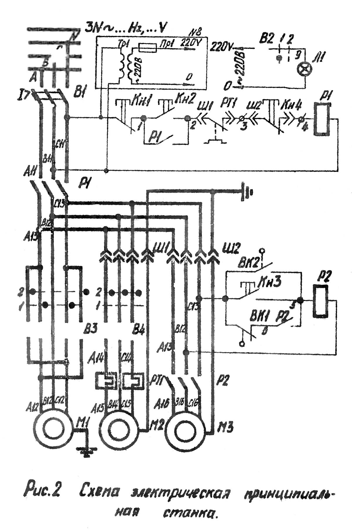 Електрична схема сверлильного верстата 2Г106П. Дивитись у збільшеному масштабі