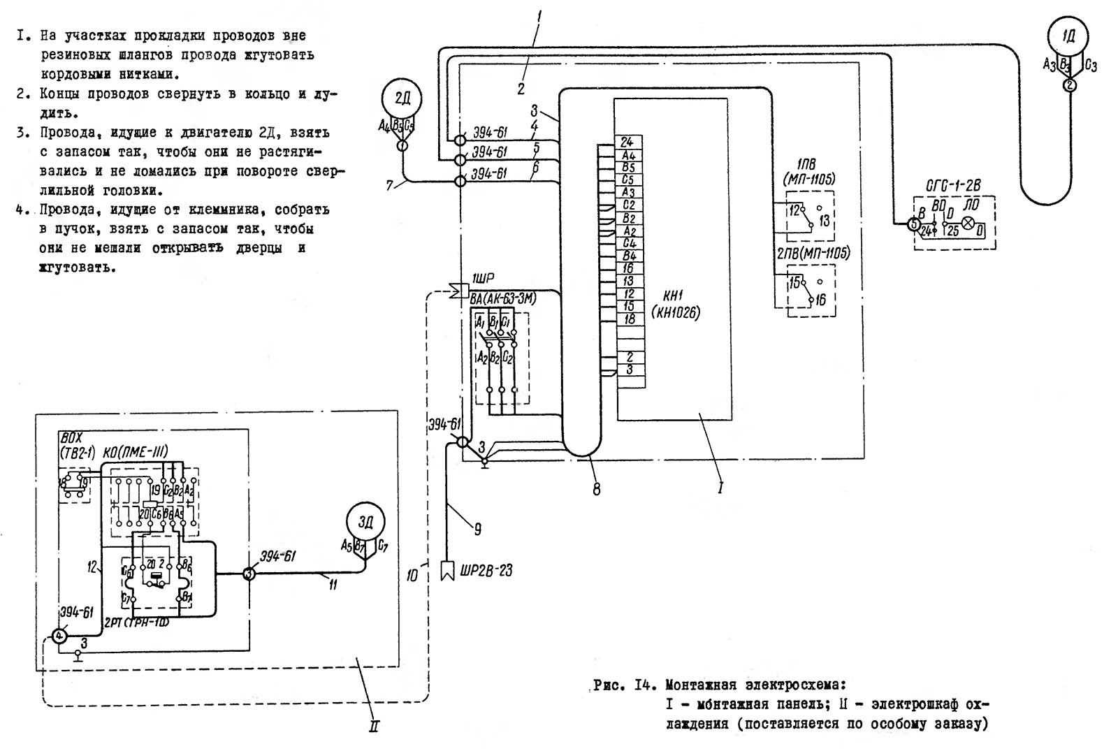 Электронасос охлаждения 3Д може работать только при включенном електродвигателе 1Д, Н.О. контакты 1KB, 1KH (3-18). Однако имеется возможность его отключения при помощи выключателя BOX.