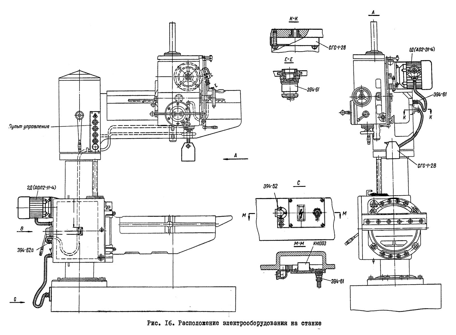 Розташування електроустаткування радиально-сверлильного верстата 2л53
