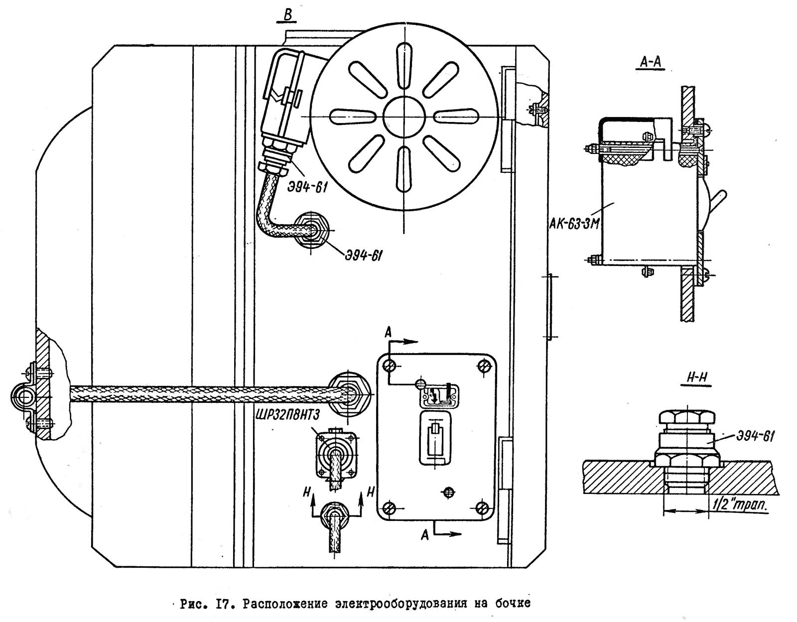 Захист ланцюгів керування от токов коротких замыканий осуществляется плавкими предохранителями 1П (ток плавкой вставки 1А) і 2П (ток плавкой вставки 2А).