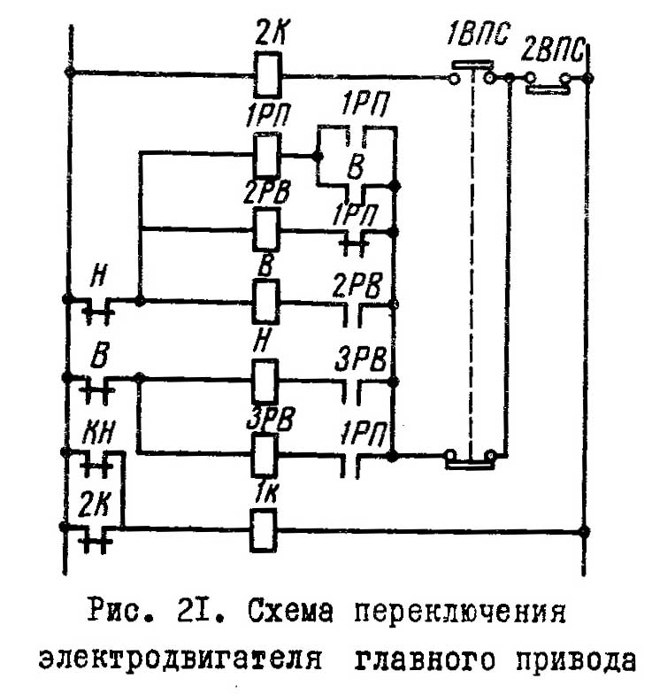 Для завершения переключения в етом случае служит автоматически чередующееся реверсирование електродвигуна (рис. 22).