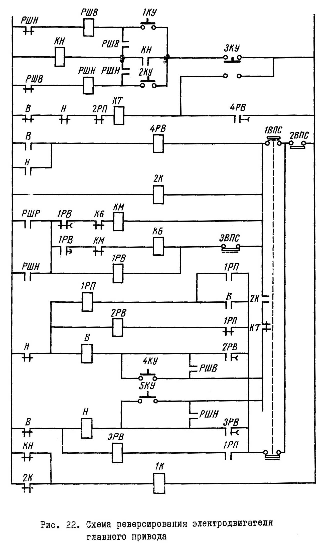Схема реверсирования електродвигуна головного приводу горизонтально-расточного верстата 2Л614