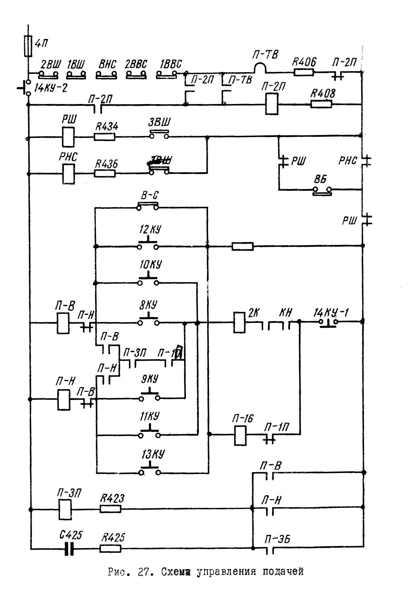 Выявление причин неисправности в цепях керування приводом подачі облегчается возможностью выделения поврежденного участка путем післядовательной проверки области дії неправильной команды, а также путем осмотра положения других органів той же ланцюги керування.