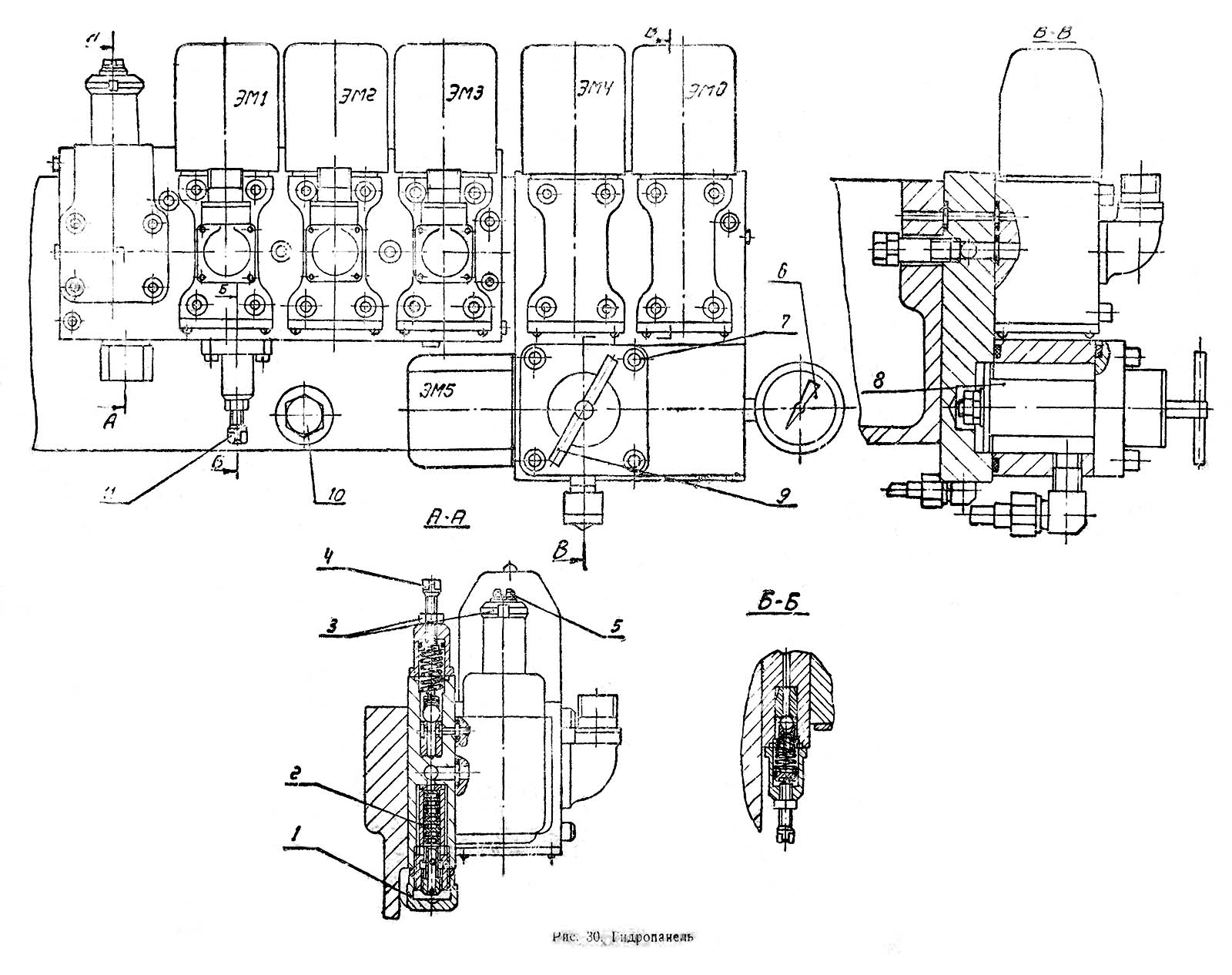 Гідросхема радиально-сверлильного верстата 2М55. Дивитись у збільшеному масштабі