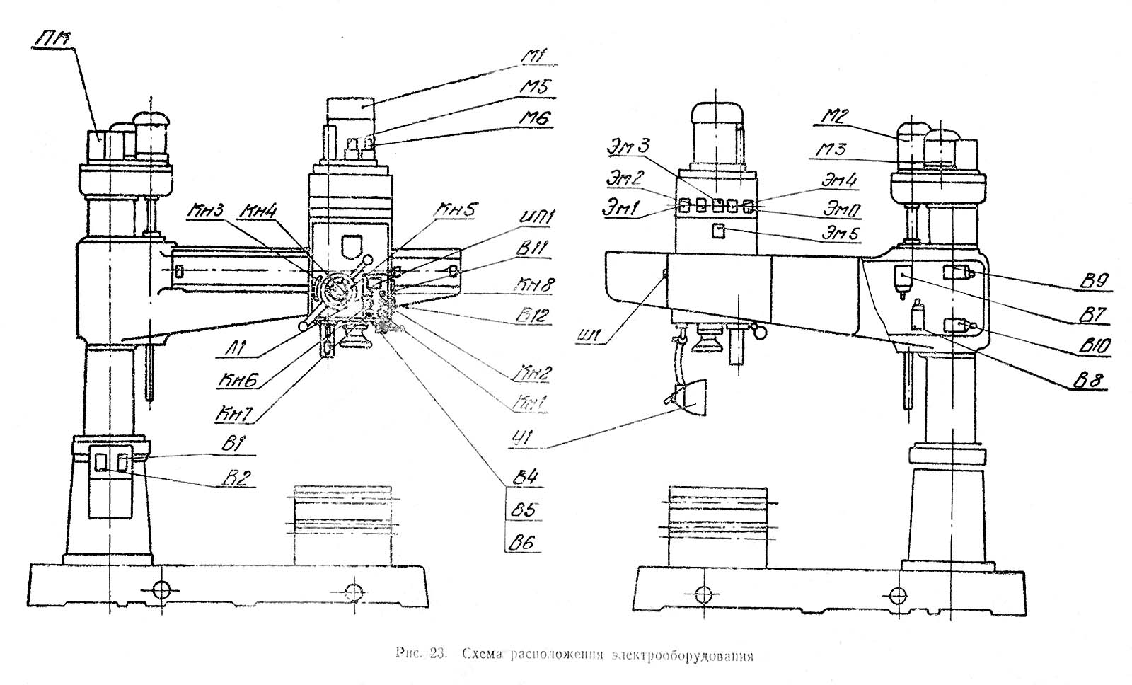 Сверлильная головка. Схема електрична з'єднань радиально-сверлильного верстата 2М55