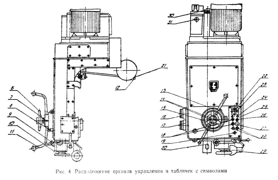 Керування наладочными операциями (рукав вверх - вниз, головка влево - вправо, зажим - отжим колонны і головки) осуществляется соответствующими кнопками.